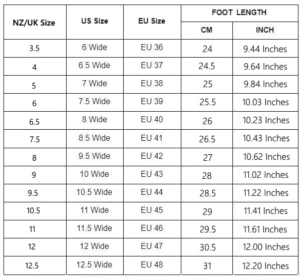 Tips: Those with high ankles or wide feet are advised to buy a size up.